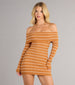 Cozy yet flirty—this striped sweater mini dress hugs your curves with a snug knit and a sultry off-shoulder neckline. Pair it with boots or heels for the perfect fall night-out look.