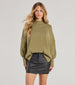 Comfy and cozy. this ribbed knit sweater features a mock neckline. long dolman-style sleeves. short side slit accents. and the perfect oversized fit. Pair with biker shorts for a casual look. or a faux leather mini skirt for a dressier vibe.
