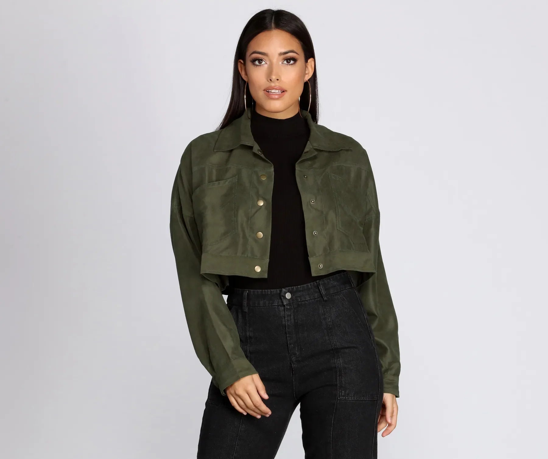 Lightweight jackets are the best for layering! This cropped jacket is designed with a collared neckline. long sleeves and metal button closures down the center and down the back as well! Composed of a soft light knit material that offers a relaxed fit and no stretch.