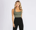 This essential knit bodysuit is a great starter to get a stylish look. It features a sleeveless bodice. tank-like shoulder straps that lead to a cross back. a trendy square neckline. and a partial bottom coverage with dual snap button closures. The stretchy knit fabirc offers a form hugging fit.