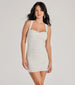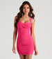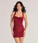 You'll cross their mind once they catch you in this sleeveless short dress featuring a sweetheart neck. wide tank-style straps that cross in the back. a padded bust. and side ruched seams that accentuate your curves. Complete the look with a sparkly bracelet and clutch.