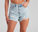 You may be a damsel in distress. but at least you're well dressed in these high-rise mom shorts! They feature edgy distressed accents on the front and a frayed hem on light wash denim fabric with no stretch. Complete the look in a graphic top and sneakers.