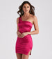 Dance the night away in this silky satin mini dress! It features a sleeveless one-shoulder neckline. a tank-style strap that leads to the strappy back design. a bodycon silhouette. and a side slit accent. Complete the look in dazzling earrings.