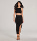 Dance all night in this midi skirt featuring a flattering high-rise waist. form-hugging silhouette. and a high side slit with a flirty ruffled trim perfect for styling with heels. The smooth knit fabric hugs your curves and offers plenty of stretch.