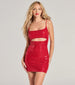 Keep it devious and chic this Halloween in a sleeveless sequin dress that features a scoop neckline with supportive spaghetti straps. a daring midriff cutout. and a curve-hugging mini-length hem. Complete the costume with the matching devil-horned headband or rhinestone wings.