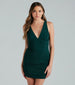 Ring. ring. that's your bae calling to set up a date night! Discover this perfect sleeveless mini dress for your night featuring a sultry plunge V-neckline. bodycon silhouette and side ruched seams. and a fitted mini-length hem. Complete the look with hoop earrings.