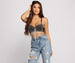 Dazzle in a rhinestone bra to bring out your inner diva! The bra features a sweetheart neckline. rhinestone fringe. and adjustable spaghetti straps. Complete your head-turning night out outfit with high waist jeans and a faux leather belt.