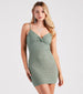 Dazzle them all with your shine in this glitter mini dress! It features a sleeveless V-neck. spaghetti straps. a knotted bust and back cutout accent. a bodycon silhouette. and a mini-length hem. Complete the look in strappy block heels for clubbing!