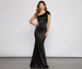 Keep it luxe in the stunning Delana dress that brings the sophistication to your special evening. She features a unique one-shoulder neckline with a charming bow accent on the left shoulder. a floor-length mermaid silhouette. and is composed of a captivating satin-like fabric. Complete your special occasion outfit with rhinestone earrings.