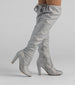 Polish up real nice in these rhinestone over-the-knee boots! They feature an over-the-knee height with a tie-back detail. an almond-shaped toe. an inner zipper closure. a block heel. and all-over rhinestone embellishments for the perfect sparkle on the faux suede material. Complete the look in a party dress for a dressy celebration!