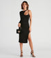 It doesn't get better than having this knit midi dress in your rotation! The dress features a trendy one-shoulder crew neckline with a long sleeve. spaghetti strap. and cutout bust that leads to the form-hugging silhouette with a sultry side slit hem. Complete the look in chic marabou heels.