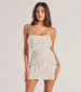 Bring the glam dramatic flair in this sleeveless mini dress at parties! The dress features a dazzling display of rhinestone embellishments along the ruffled bodycon fit. Pair with heels.