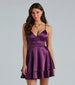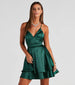 Make your dreams come true and get this satin skater dress for your upcoming social occasions! It features a sleeveless V-neckline. a lightly padded bust. adjustable spaghetti straps. a sheer lace back design followed by a lower back cutout. and a ruffled short-length hem with a fit and flare skater silhouette. The silky-satin woven fabric includes a knit lining. Complete the look with a beaded clutch and heels.