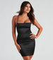 Dreamy and oh-so-sleek. this satin mini dress is perf for nights out with the girls. It features a sleeveless square neckline. spaghetti straps that lead to a cross-back design. a lower back lattice design followed by a bold cutout. and a short. bodycon silhouette that will hug your curves. Style with fringe earrings and platform heels.