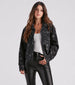 Layer on this cool celestial print shacket for a dreamy trendsetter vibe! It features a collared neckline. long sleeves with buttons to cuff. a complete button-down front. buttoned chest pockets. a mid-length hem with a relaxed fit. and an all-over celestial-inspired print showcasing stars. moons. and planets. Style this denim shacket with hoop earrings to complete your festival look.