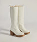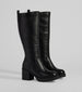 Level up the edgy chic vibe of your everyday look with these under-the-knee moto boots featuring a round toe. an inner zipper closure for effortless styling. a platform sole. and a sturdy block heel. Complete the look with a mini dress and an oversized jacket.