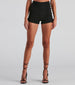 You'll love the edgy details of these crepe shorts that are perf for festival season. They feature a high-rise waist. lattice designs down the sides. and a semi-cheeky. form-hugging fit. Style these shorts with a crop top and booties.