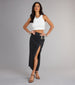 This buckle slit maxi skirt is the ultimate power move. Sleek fabric hugs just right while the high slit makes every step a statement. and your favorite heels. perfect for dinner meetups or casual dates.