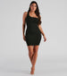 This simple and stylish mini dress is an effortless choice for every day! It features a sleeveless one-shoulder neckline. a thin tank strap. and a short. curve-hugging. bodycon silhouette. The lightweight ribbed knit fabric offers plenty of stretch. Complete the look with heeled mules and a crossbody purse.