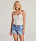 Create a flawless outfit with this essential basic crop top! The top features a flattering scoop neckline. spaghetti straps. and a fitted crop hem on double-lined stretchy rib knit fabric. Complete the look with denim shorts.