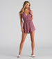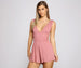Get that effortless style that's perf for summer in this casual and cute sleeveless romper. It features tank shoulder straps. a deep V neck and back. a high waist with smocked detailing. trendy side cutouts. and flowy shorts. Pair this gauze romper with strappy sandals and hoop earrings.