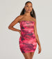 Effortlessly enchant everyone you meet in this strapless mesh mini dress at the club! Made from a watercolor printed mesh fabric. this dress is designed with a sleek strapless neckline. flexible boning for a snatched look. and a flattering bodycon silhouette and mini-length hem. Style this dress with stiletto heels.
