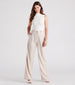 Show off a chic elevated style in these wide-leg trouser pants. They feature a high-rise waist with belt loops. dual front pockets. crisp pleated detailing. and a relaxed. wide-leg silhouette. Complete the look with a fitted bodysuit and clear mules.