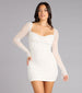 Shimmer with every step in the Elise mini dress. a dazzling dress designed for spotlight moments. With gorgeous rhinestones and faux pearls that trace every curve. sheer long sleeves. and a lace-up back detail. this dress is the perfect mix of flirty and refined—made for the nights you want to own the room.