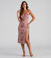 Bare your shoulders in this floral midi dress for brunch with the girls! Featuring spaghetti straps. a sweetheart neckline. and a front slit accent on crepe knit fabric with a moderate stretch. Complete the look in heeled mules and hoops.