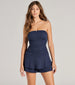 Stay endlessly fab in a chic romper! Romper features a sleeveless square neckline with a mini rosette accent. ruching. a pleated mini skirt overlay. and fitted shorts. Style with hair bows and heels.Â