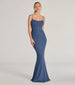 Make a glittering entrance in the Erica formal long dress at weddings. galas. or proms! Made from luxurious lined glitter knit fabric with plenty of stretch. this gown cascades to a floor-length hem. making a dramatic statement at any formal event. She features a sleeveless cowl neckline and delicate spaghetti straps. The dress hugs your curves in a flattering mermaid silhouette. Complete the look with gemstone earrings and a bracelet for extra bling!