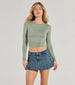 Embrace a sleek silhouette with this long-sleeve fitted top. a versatile staple to your wardrobe. Its figure-hugging design ensures a flattering fit. while the comfortable stretch fabric allows for ease of movement. With the classic crew neckline. this top pairs effortlessly with high-waisted jeans or skirts. making it a staple for both casual and dressier ensembles. Perfect for layering or wearing on its own. it's a timeless piece that offers both style and comfort