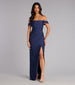 Effortless sophistication. redefined. The Evelyn formal dress moves with sleek confidence in soft. sculpting knit that hugs every curve. With its off-the-shoulder neckline and high front wrap slit. it's made for the kind of entrance that lingers long after you've walked by.
