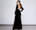 Channel Old Hollywood glam with a twist as you wow in our luxe Everly black dress! She features a high round neckline. fitted long sleeves and breathtaking open back with a pearl embellished trim. Her slim fit bodice leads to an elongating floor length silhouette that is accented with high side slit to reveal a hint of skin. Dress is composed of a lined velvet fabric that offers a form hugging fit with a moderate stretch.
