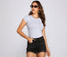 Bring it back to basics with a tee that belongs with your favorite pair of jeans! The top features a scoop neckline. short sleeves. and composed of a knit fabric.