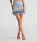 Stroll into the party looking fabulously sassy in this mini skirt featuring a high-rise waist. back zipper closure. bodycon silhouette. and marabou feather trim hem. Complete the look with the matching blazer and heels!