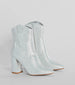 Shine like a fabulous star in these metallic western booties at festivals. concerts. and bachelorettes! Shimmering rhinestone embellishes these boots featuring a trendy pointed-toe. comfortable block heels. a western-inspired design. and an inner zipper closure to secure the style. Complete the look in a fun cowboy hat!