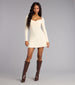 Cozy. flattering. and totally fall-coded. This ribbed knit mini dress features a sweetheart neckline and subtle ruching that shapes your silhouette while keeping it soft and effortless. Pair it with knee-high boots for a perfect fall day out.