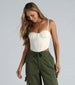 Fancy yourself in this satin bustier perfect for dressing up your favorite pants or skirts! The bustier top features a sweetheart neck. adjustable spaghetti straps. a mesh-lined built-in padded bust with underwire support. side-lined mesh panels. flexible boning inserts. and a cropped hem and a back zipper closure. Complete the look in best-selling bottoms for a birthday dinner or date night!