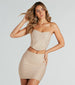 Look like a fantasy come true in this metallic bandage corset top! This stylish. strapless sweetheart neckline top is designed with flexible boning inserts. non-slip grip lining. and a back zipper and hook-eye closure for a secure fit. The cropped hem and metallic bandage seamless knit fabric make it the perfect top to stand out from the crowd! Style with the matching bottoms.