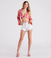 Make these cute shorts your new favorite pair this season. The shorts feature a high-rise fitted waist. on-trend destructed detailing. and a cutoff hem. The denim fabric offers a moderate stretch for comfortable wear. Complete the look with a crop top and combat boots.