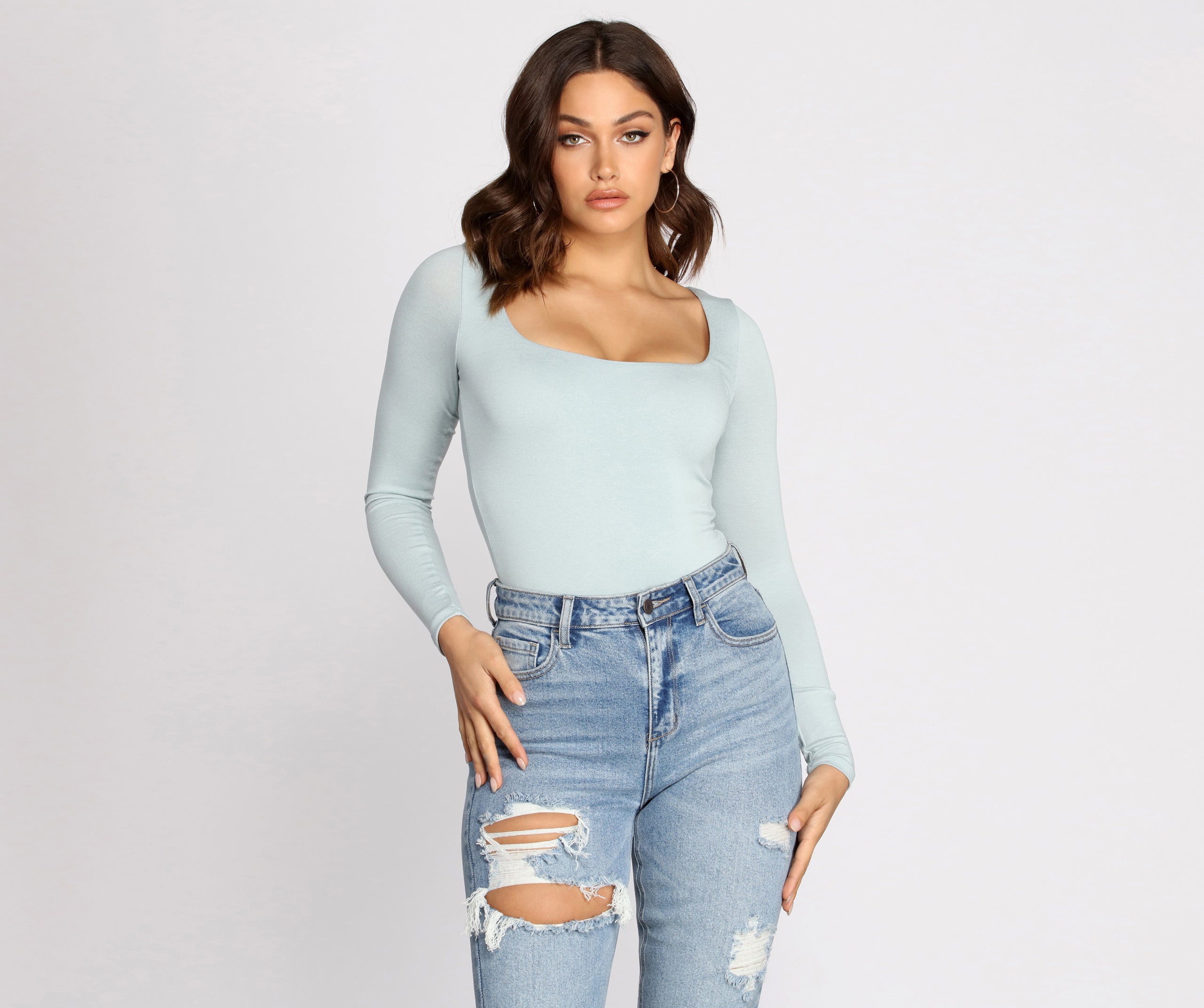 We're feelin' a basic bodysuit! Pair this must-have piece with a pair of faux leather skinnies and sleek stilettos to dress this bodysuit up!
