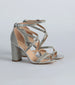 These rhinestone block heels will have you feeling like a glamorous diva! The metallic heels feature an almond toe. a rhinestone-embellished strappy design. a block heel. and a closed ankle with adjustable straps and buckle closure. Complete the look with a hair accessory for a special occasion!
