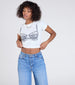 Play up your femme sass with this lace bra graphic crop tee. perfect for elevating a pair of jeans!