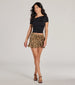 Serve ultra-cute and fierce vibes in this leopard mini skort on a night out! The high-rise waist and fitted silhouette accentuate your curves. while the ruffled trim adds a touch of flirtiness to the mini-length hem layered over fitted shorts. Complete the look in a one-shoulder top and heels.