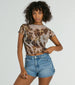 Treat your trendsetting self to this fierce leopard mesh crop top perfect for everyday styling! Featuring cap sleeves and a crew neckline. this top is perfect for making a statement. The cropped hem and sheer mesh fabric with a bold leopard print will have you standing out from the crowd. Complete the look with a bralette and high-rise jeans for a concert or casual party!