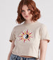Find your balance with this graphic tee to add to your weekly rotation! It features short sleeves. a crew neck. a front ying yang graphic. and a raw-cut cropped hem on cotton fabric. Complete the look in denim shorts for a casual hang with friends!