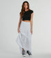 You can't go wrong while on vacay in this maxi skirt! Featuring a high-rise elasticized waistband and a flowy tiered silhouette. this skirt is designed to flatter your figure. The maxi-length hem adds a trendy touch while the soft woven fabric ensures comfort while you're relaxing under the sun or having dinner with a view! Complete the look with the matching top.