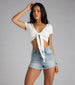 Serve flirty without saying a word. This rib knit tie-front top is giving effortlessly hot with a fitted silhouette that's made for coffee runs. early brunches. and everything in between.