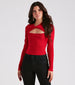 Showcase an effortless and flirty look in this on-trend crop top! It features a twist-front design at the neck with an above-the-bust cutout creating a square neckline. long fitted sleeves. and a fitted. cropped hem. The ribbed sweater knit fabric has plenty of stretch. Style with your fave pair of denim.